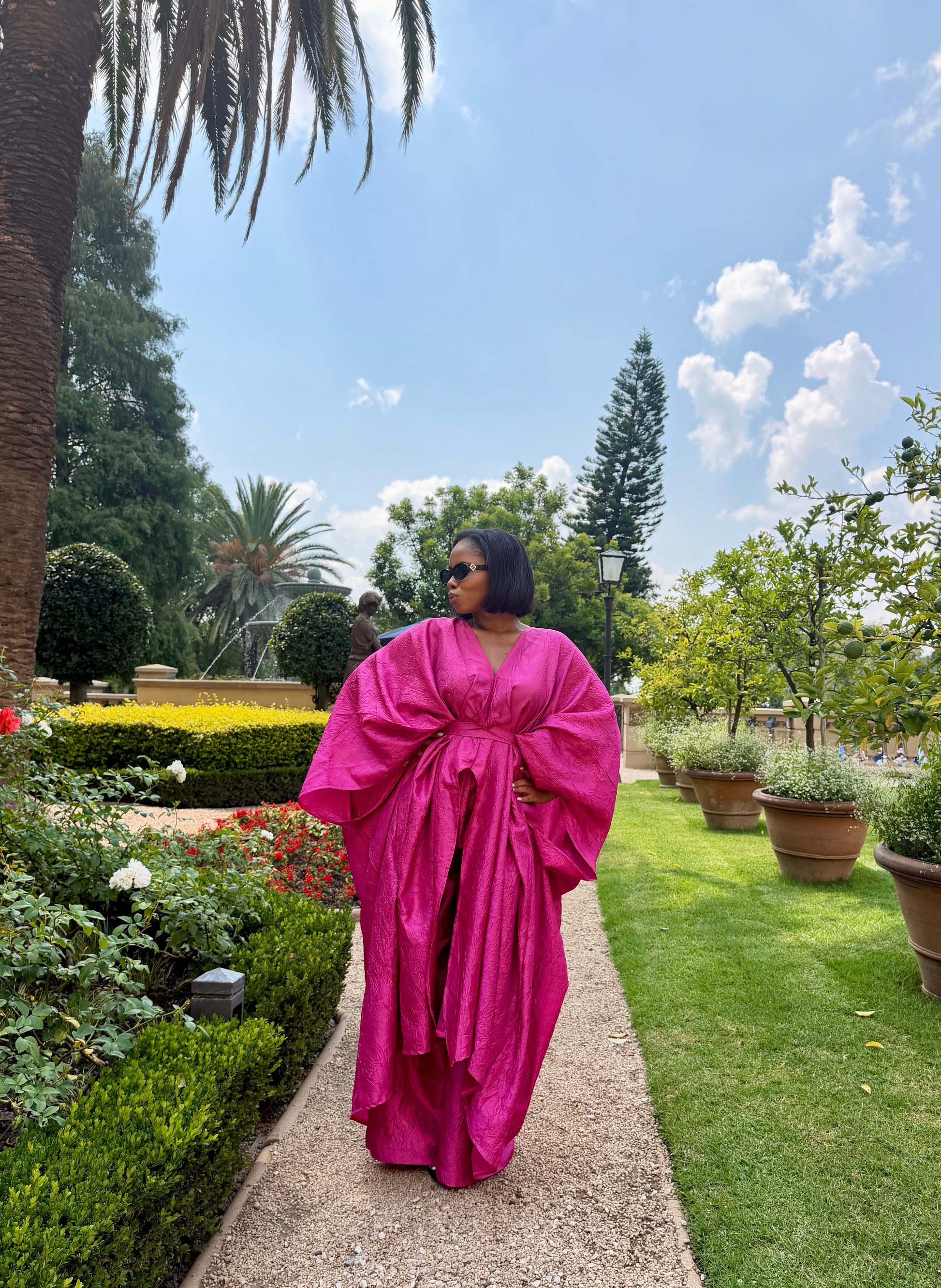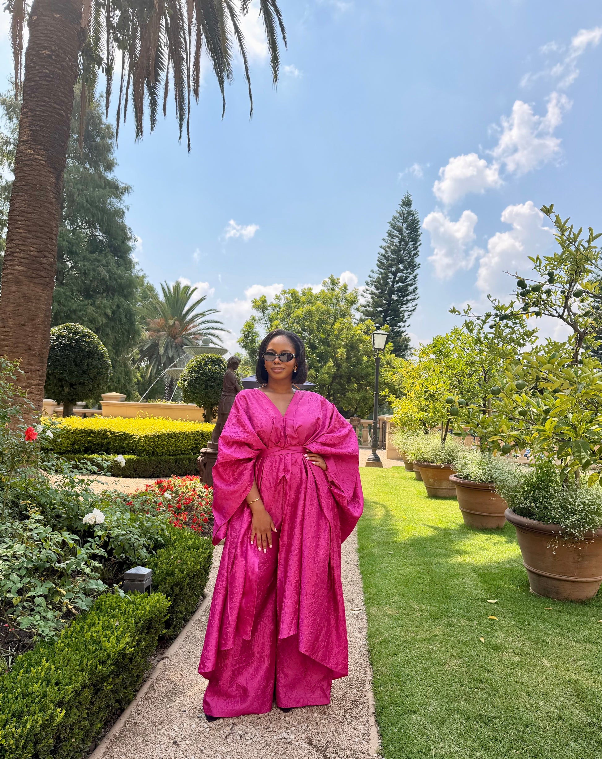 Crafted in luxurious, high-impact fabric, this piece commands attention while remaining refined and timeless. Whether worn in bold fuchsia or rich cocoa, it embodies confidence in its purest form.